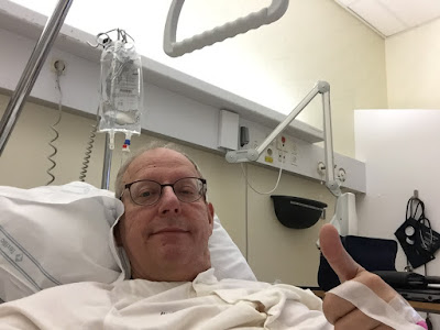 Allt verkar ha gått bra så här långt. Opererades under knappt två timmar idag vid lunch och var på benen 45 min efter op. Därefter har jag ägnat mig åt sängträning och ytterligare ett par turer i gåstolen, varvat med lite sömn, läsning och surfande/hantering av mail. Allt under överinseende och support från fantastisk personal!